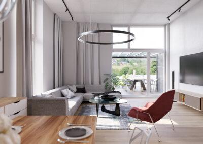 - 8 nadstandardně vybavených bytových jednotek o dispozicích 1+kk až 4+kk – některé s balkonem či terasou pro příjemné venkovní posezení.
